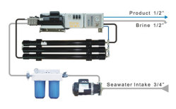 productos cubre desalinizadores modulares AC, DC y accionados por correa de 8,4 GPH / 32 LPH hasta sistemas desalinizadores auto-contenidos con una producción de 14.000 GPD o 53.000 LPD por